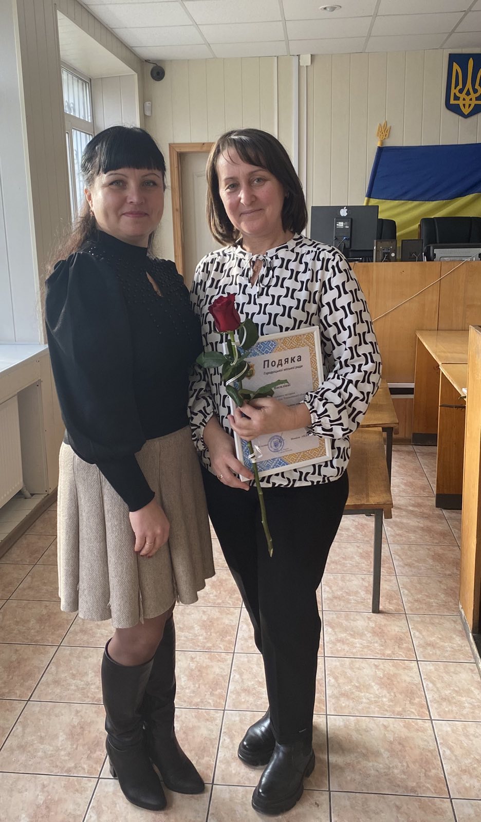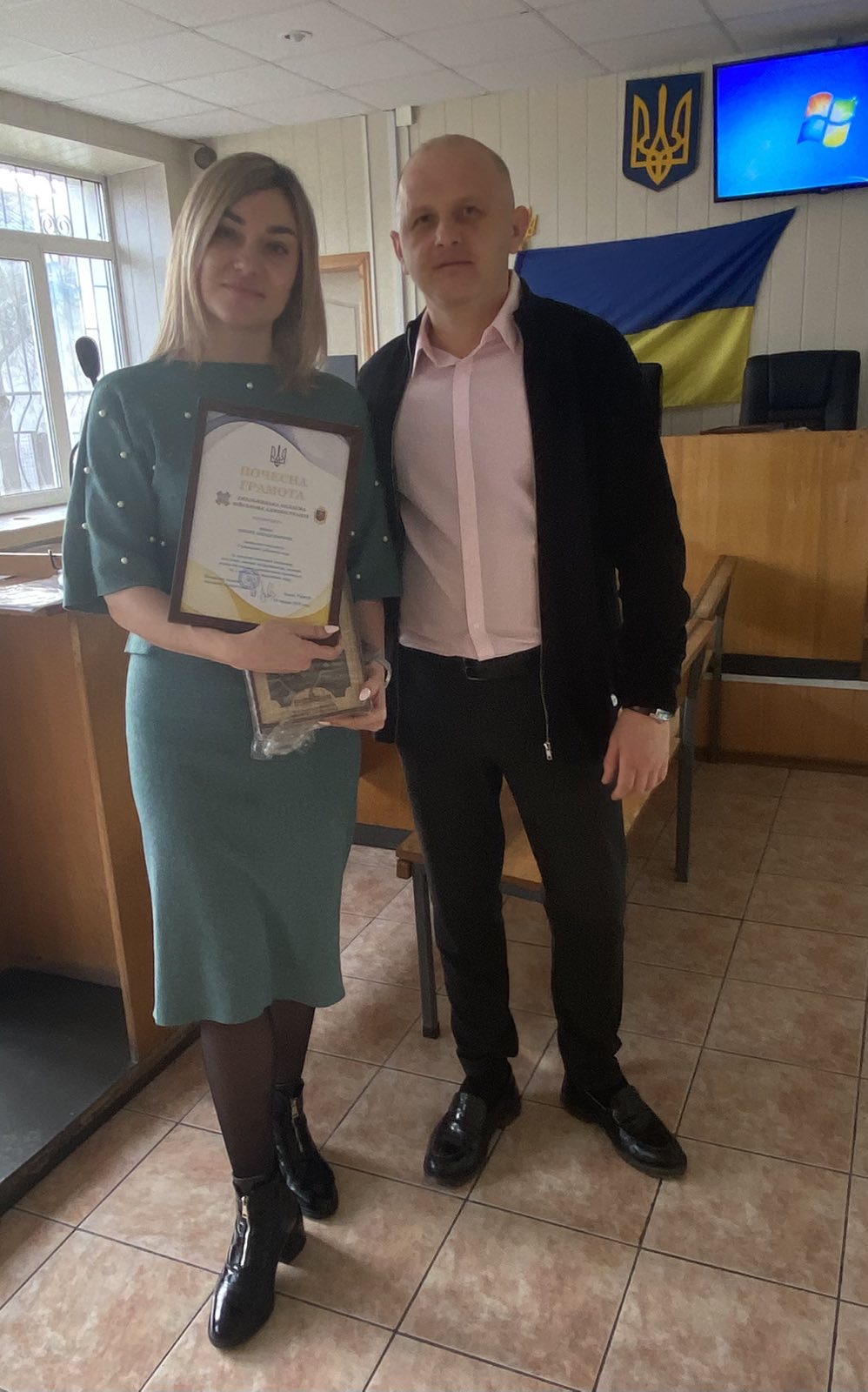 До привітань також долучилася представник Городоцької міської ради Хмельницької області Олена ГРІХ, яка висловила слова вдячності працівникам суду за плідну співпрацю, відповідальне виконання службових обов’язків та вагомий внесок в забезпечення правопорядку в громаді. Вручила почесні грамоти працівникам апарату суду: